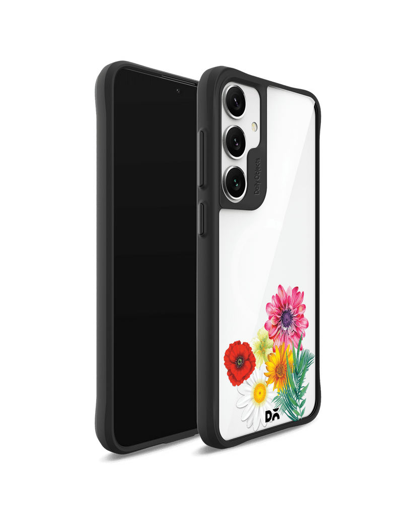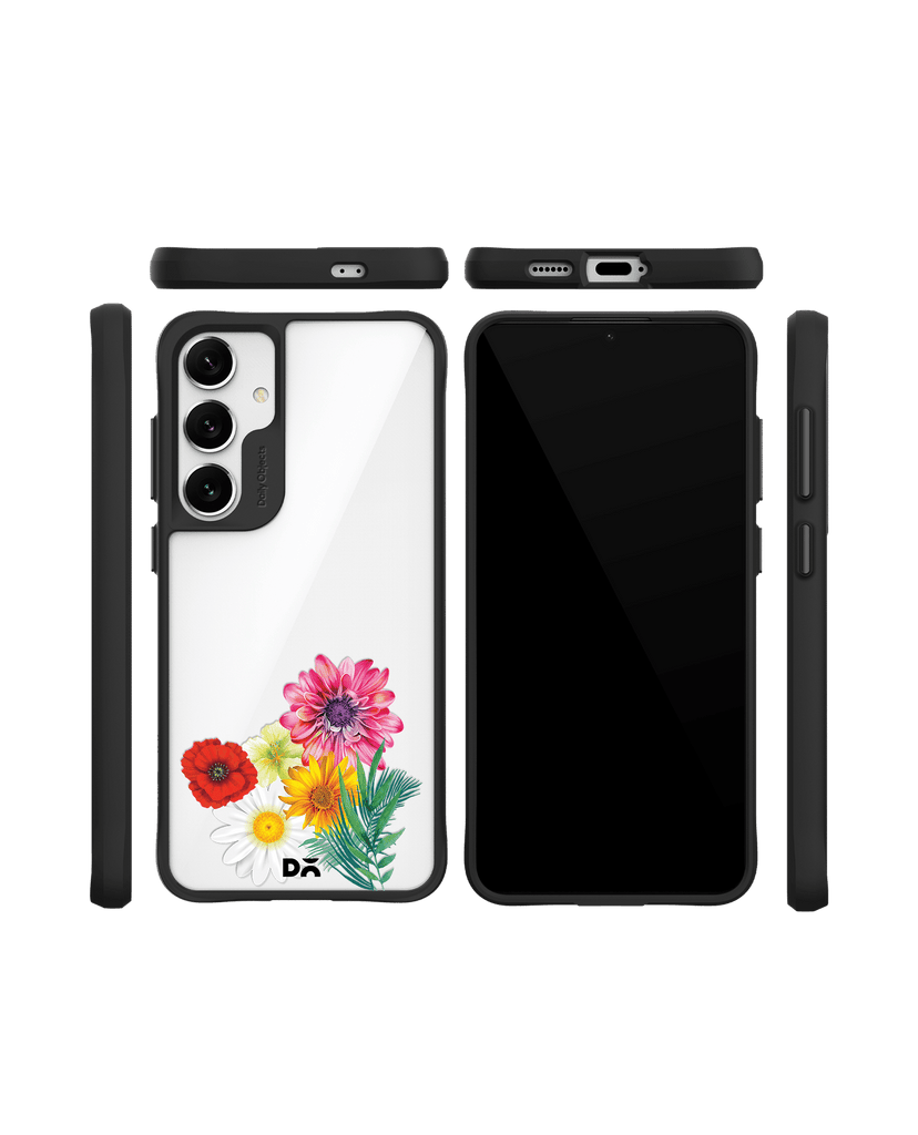 Clear Pink & Yellow Flowers Black Hybrid Clear Case Cover For Samsung Galaxy S24 Plus