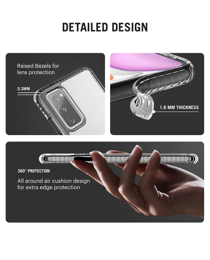 The all new shock absorption bumper gives 360 degree drop protection from 2 metres (6.6ft) height using the novel Air Cushion Technology.